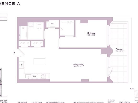 Elevated amenities span over 10,000 square feet, including FRAME, a two-story fitness center; THE FAIRWAY, a golf and entertainment suite; THE SCENE, a screening and performance space; THE EXCHANGE a two-story business center; and THE PARLOR, a resident social lounge where fresh coffee and light breakfast will be provided. Additional offerings include THE PAW WASH, a pet spa; THE VAULT, a secure storage area for residents; 24-hour attended lobby, doorman, and on-site concierge by LIVunLtd. Just moments from Central Park and the city's finest culture, shopping, and dining, 18W55 is Fifth Avenue living, redefined.