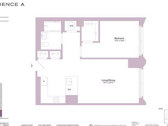 Elevated amenities span over 10,000 square feet, including FRAME, a two-story fitness center; THE FAIRWAY, a golf and entertainment suite; THE SCENE, a screening and performance space; THE EXCHANGE a two-story business center; and THE PARLOR, a resident social lounge where fresh coffee and light breakfast will be provided. Additional offerings include THE PAW WASH, a pet spa; THE VAULT, a secure storage area for residents; 24-hour attended lobby, doorman, and on-site concierge by LIVunLtd. Just moments from Central Park and the city's finest culture, shopping, and dining, 18W55 is Fifth Avenue living, redefined.