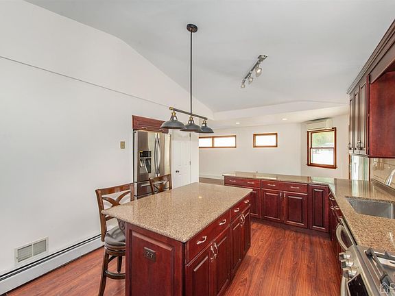 - Features: Granite/Corian Countertops, Breakfast Bar, Kitchen Exhaust Fan, Kitchen Island, Pantry, Eat-in Kitchen, Separate Dining Area