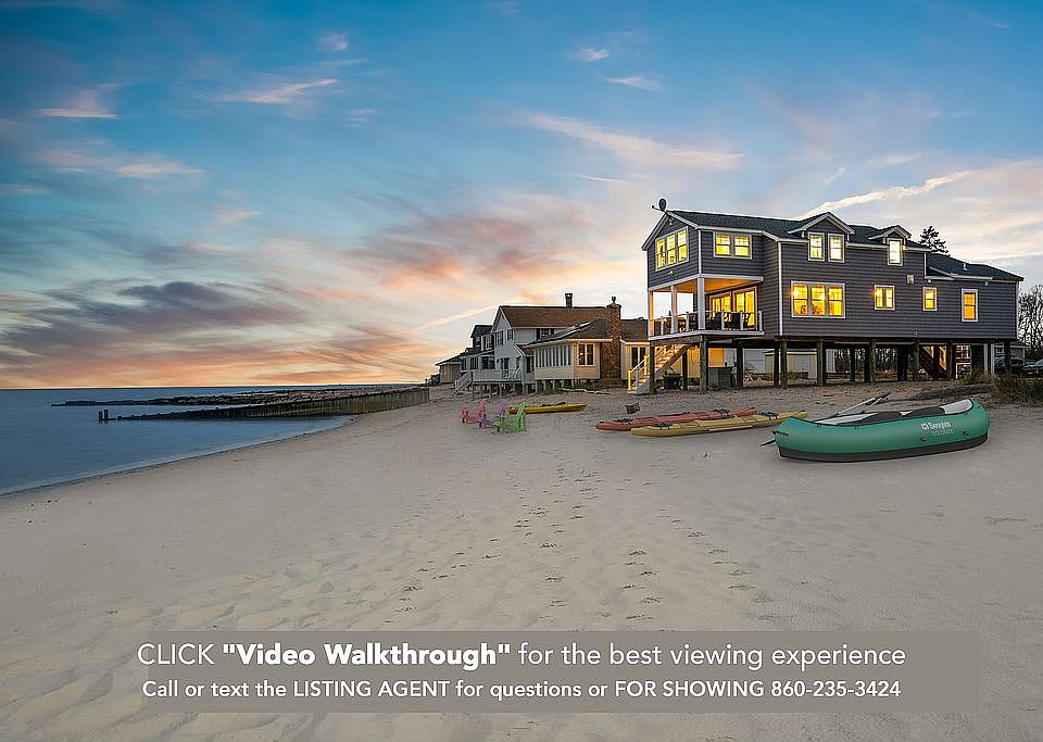 SOLD by The Hillyer Team, Leaders in the sale of luxury property sales. Edward Hillyer, Team Leader, 860-235-3424. To see what we have to offer view our short video: hilllyerteam.com/video. A symphony of the sea surrounds this direct 5 BR, 3.5 BA waterfront home with a breathtaking seascape of sunrises, sails, sand, and surf. This lot is 2X the size of many nearby lots, affording more privacy and parking! Step off your deck and sink your feet into the warm white soft sand. An open floor plan with gourmet granite stainless kitchen with large breakfast bar opening to large deck and the perfect play course – the intrigue carries through to the MBR which is a retreat itself, boasting spell-binding panoramic water views. Summer seasons are packed with events of a bygone era. Imagine children and grandchildren riding bikes throughout the neighborhood, finding friends to play with at the beach, exploring the shoreline rock crevices for muscles, snails and crabs - beach games, and ice cream sundae parties – growing lifelong memories and friendships. Old Lyme is one of the prettiest small towns along the shoreline. Lyme was, for a time, designated as the "American Barbizon”, and became known as the most famous Impressionist colony in America, the "American Giverny." The area is home to trendy eateries, art galleries, museums, boutiques, and large tracts of nature preserves offer countless hiking trails. Newsweek once named Lyme-Old Lyme High School as one of the best in America. Ideally situated midway between New York and Boston world-class entertainment and fine dining at Foxwoods and Mohegan Sun Casino. Nearby train service (Amtrak and Shoreline East), as well as ferry service to Long Island, Fishers Island, and Block Island. See a spectacular video by clicking Video Walkthrough. Clicking contact agent, take a tour, in-person tour, request a tour, interested in touring this home? etc., will put you in contact with a salesperson who is not the listing agent, and may have never seen the property. For more information or to see this property with the LISTING AGENT: Call or text Edward Hillyer, listing agent 860-235-3424. For all photos go to hillyerteam.com - Our Listings.