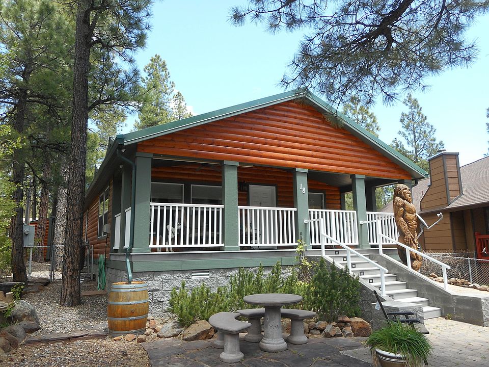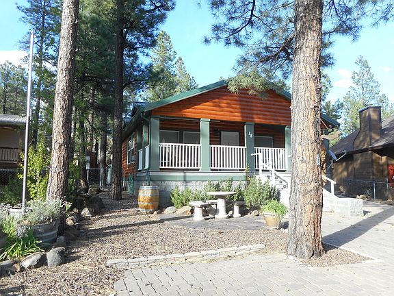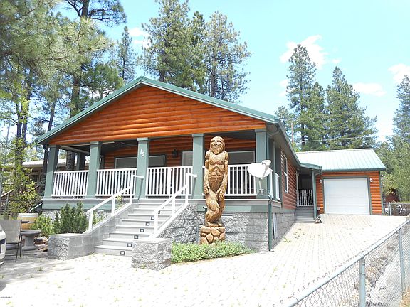 This home is one of the most detailed homes in all of Munds Park. Custom designed Karsten Manufactured Home. 2x6 framing-Custom kitchen finish trim in alligator juniper, granite counter tops, composite sink,custom wood cabinets with roll out shelves in kitchen and laundry Attached 15x25 site built garage, beautiful paver driveway, Log sided, metal roof, R 38 ceiling , R 21 Floor, R 19 Walls, 200 AMP service,10 x 17 front trex covered deck, back 8 x 16 partially covered trex deck,, 3 Clerestory skylights in great room & dining area. Concrete stemwall and concrete piers, 2009 13 SEER 2.5 ton A/C unit and high efficency 2 stage 90% furnace. Detached 4x12 log sided shed. Beautifully landscaped with strawberries coming up, drip system too. Fabulous street view from large covered front deck