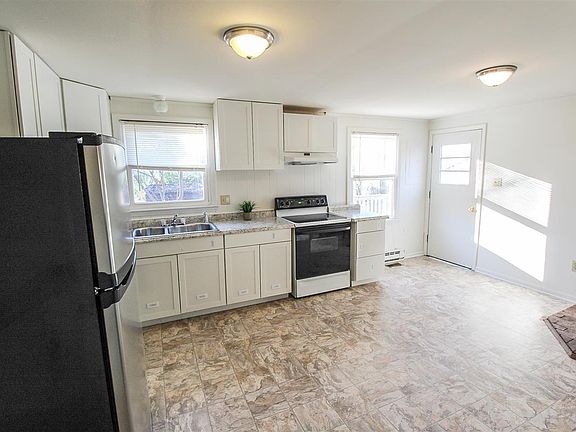- Kitchen Cabinets/Counters: Formica Counter, White Cabinets