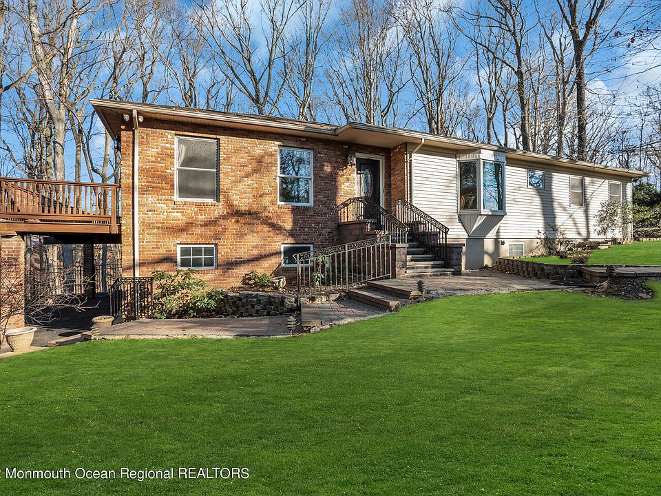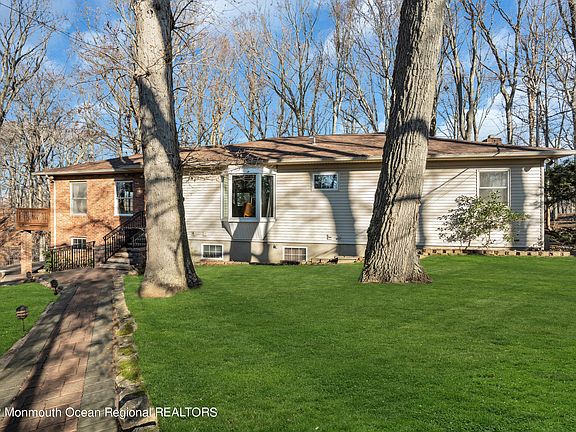 Great opportunity to own this expanded Ranch in Holmdel! Located on a quiet street this home features 5 bedrooms, 2.5 baths, hardwood floors throughout, large family room with wood burning fireplace, eat in kitchen with center island, granite countertops and sliding doors that lead out back to a wrap around deck & private yard. Full finished walk out basement offers extra room for entertaining, office and storage.