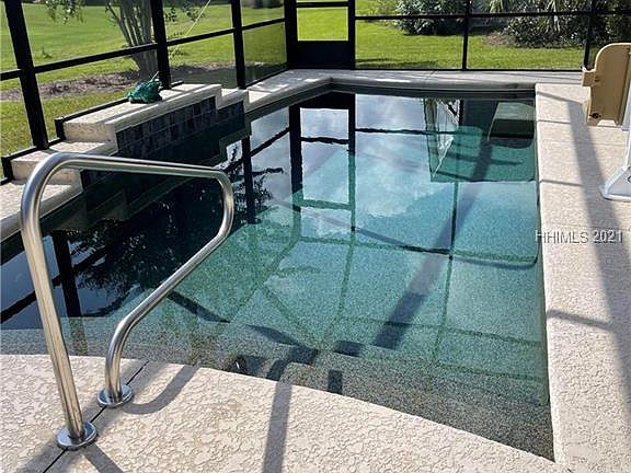 Want a beautiful golf view from your own gorgeous POOL & Lanai? This is it & w/wide side yards & no homes in back so lots of privacy! This charming home features 2 bedrms plus office, 2 full baths, an enlarged Guest bedrm w/nearby bath, spacious kitchen,& Great Rm w/Dining area, plus large garage. A lovely front courtyard greets you. A back covered & screened Lanai gives you plenty of space for relaxation & enjoyment of your gorgeous swimming pool w/fountain.This home's lot is just one of the best & is off a planted circle at the street in front & a backyard view to knock your socks off! Beautiful personal pool & stunning golf view too! WOW!