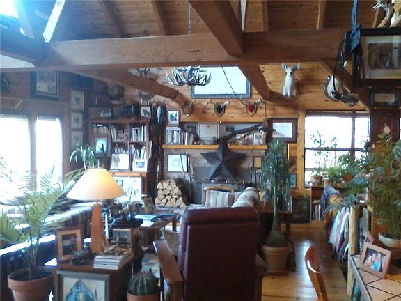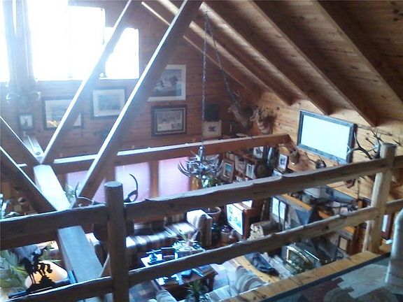 Great view of downtown in the winter time that could be opened up in the summer as well by removing a few limbs. Also very close walking distance to downtown. Log home has lots of glass for natural light with a 3 sided wrap around deck that is covered on two sides 8x48 each. 6x30 front deck not covered. Living area is all open on the main level as well as the master loft bedroom. not figured is sqft is front of loft. Three bonus rooms in the basement are finished but only one has a window and no closets.