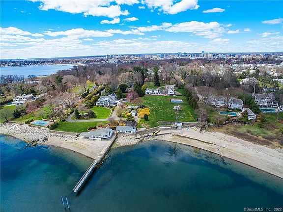 PRIVATE WATERFRONT COMPOUND. Wallacks Point is a once-in-a-lifetime opportunity to own 6+ acres on Long Island Sound. The unique estate is set on a coveted quiet lane, consists of 2 Coastal Homes and 5 Cottages. The vintage Fieldstone Manor highlights endless water views, two beachfront cottages and a 205 ft dock. The 1890's Carriage House with Gunite pool and sweeping lawns has been updated and expanded throughout the years. Both homes boast over 500 feet of private sandy beaches. Enjoy sensational sunrises and sunsets, kayaking, paddle boarding or boating in your own private sanctuary. The buildings make up 55 rooms, 19 bedrooms, 20 full/4 half baths and over 20,000 sq ft in total. Multiple options for use of property, possible subdivision or leave as-is and enjoy the room to entertain. Only 38 miles to New York City, close to several trains, shopping, and restaurants. Floorplans available, please inquire. Paradise found at Wallacks Point!