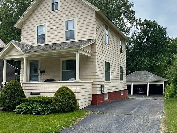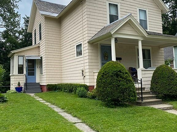 Your new home located in a quiet location close to down town but in a private setting all its own. This well maintained home sits on a meticulously maintained lot with a three car garage. The house has a front porch for your evening coffee and a side porch entrance. The home has been recently painted. The basement has a bulkhead laundry and basement sink. The bathroom is located conveniently off the kitchen. Wood floors through out the house except kitchen (per seller) The dining area opens into the living room for that open concept feel. The 2nd floor has three bedrooms and a walk up large attic. includes all appliances. The home is vacant and easy to show.