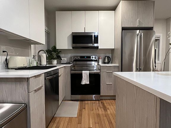 Newly Renovated 1 bed 1 Bath Featuring in unit washer and dryer, AC, high end stainless steel appliances such as Stove, Fridge, Microwave, Dishwasher and garbage disposal the kitchen is dressed in high end quartz countertops and European cabinets. Private outdoor space. Includes 1 garage parking spot for an additional $300. flexible