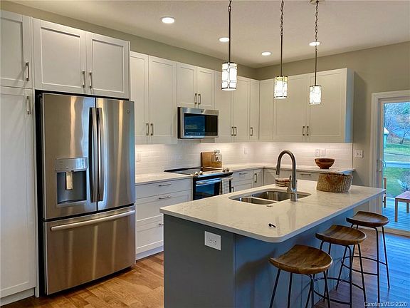 Requesting back up offers - Just 1 mile to Main St. Weaverville! Enjoy all Lake Louise has to offer: walking trails, fitness area, playground or picnic by the lake. Sit on the comfort of your screened in back deck to enjoy the lake view without having to maintain the lawn. HOA covers all ground maintenance = lock and leave. This new construction home offers high ceilings upon entry, open floor plan, cabinets from Spain, quartz countertops, quality finishings throughout, sleek gas fireplace, soaking tub, large walk-in tiled shower, closet space galore, hardwood floors, gas furnace and central AC for the downstairs and an electric heat pump for the upstairs. 2 laundry areas! Space for a full size washer and dryer on the main level and a 2nd laundry room upstairs with space for a stackable unit. Electric oven could be converted to natural gas with acceptable offer. This little subdivision also offers trout fishing access because it boarders Reems Creek. Community dog park coming soon!