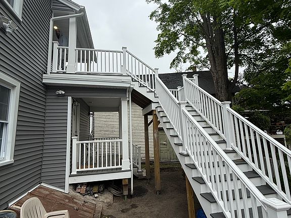 Beautiful completely Renovated two level apartment. Featuring a big deck overlooking the backyard. Two car parking. Brand new heating system, new electrical, Freshly painted. Granite counter tops, new cabinets, updated bathroom. Washer dryer hook up in the unit. Brand new appliances, completely remodeled inside and out. Central A/C, Sprayed insulation throughout the entire building to ensure low energy cost. Close to major routes still a very private setting. Available July 1st, 2025. Owner pays water and sewer, tenants pay electric, gas, cable