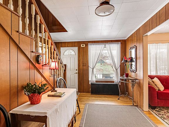 Located in Barre, on a corner lot, this 4 bedroom home is ready for its next family. Benefiting from many updates over the years including new vinyl siding, new oil tank, new insulation and chimney liner and roof in 2022, this home has been loved and maintained. Enter the home from the covered front porch and into the foyer. You'll immediately feel the charm of the early 20th century architecture including antique tin ceilings and hardwood flooring. The living room is off the foyer and is filled with natural sunlight. The living room opens up to the dining room, making entertaining a breeze. From the dining room, step into the fully equipped kitchen, featuring a small scullery. Laundry conveniently tucked away in a nook in the kitchen. A exterior door provides access to the yard. A 1/2 bathroom completes the first floor. Upstairs reveals 4 bedrooms and the full bathroom, boasting a vintage, clawfoot soaking tub/shower. The attached garage allows for direct access into the home, making coming and going in the winter easier. Outside, enjoy creating gardens around the house, or simply relax on the covered porch. Located just minutes to Barre town and city amenities. Montpelier is just 15 minutes away.