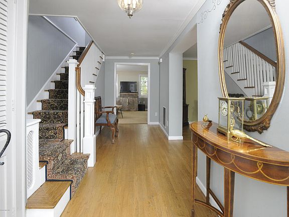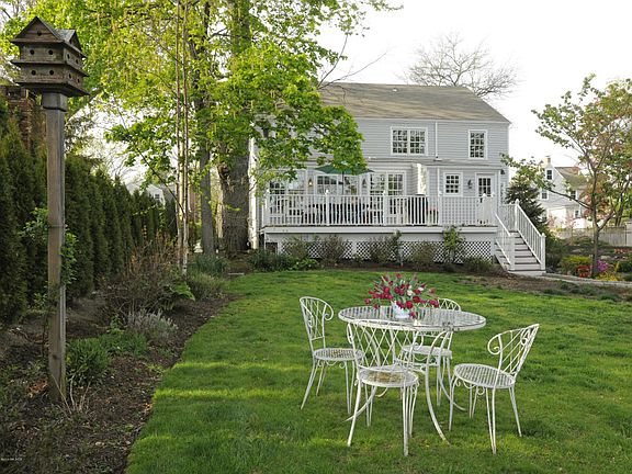 Charming, beautifully maintained colonial classic is situated on oversized .66 acre just a minutes walk to village shops, school and train. Main floor layout includes spacious living room with fireplace; formal dining room with French doors and well-equipped granite-appointed kitchen, both opening to year-round solarium accessing expansive deck overlooking large, private yard; comfortable den; and powder room. Four second floor bedrooms and two baths. Generous master includes large walk-in closet and en suite bath with tub and separate shower. Wonderful recreation room and laundry on lower level offer approximately 700 additional square feet with exterior access. Detached two-car garage built in 2001.