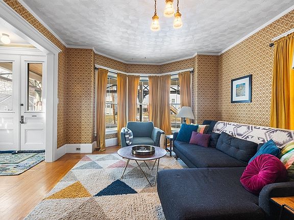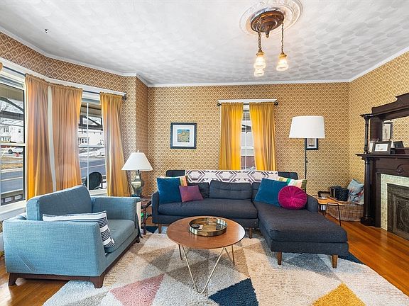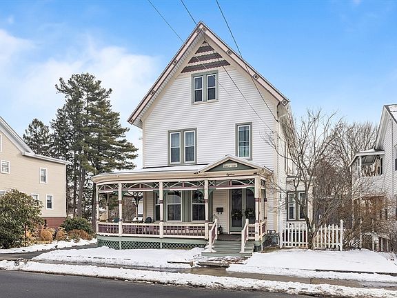 Welcome to this beautifully built 4BD/1.5BA Victorian home, located in the heart of historic Milford. As you walk up to the front entryway, you will notice the elegance of the wraparound mahogany porch, perfect for relaxing on a warm afternoon. Inside, the inviting sitting room features a coffered ceiling and original chandelier, the spacious living room boasts a decorative brass fireplace with a stately mantle creating a warm, welcoming atmosphere. A formal dining room includes a walk-in pantry, while the generous kitchen offers plenty of room for cooking and storage. Upstairs, find three spacious bedrooms, two additional flexible rooms, and a full bath, with a walk-up third floor offering a fourth bedroom and bonus room perfect for an office or playroom. A private backyard with mature perennials and new green house offers a serene retreat, while the large two-story barn with workshop space provides ample room for projects or extra storage.