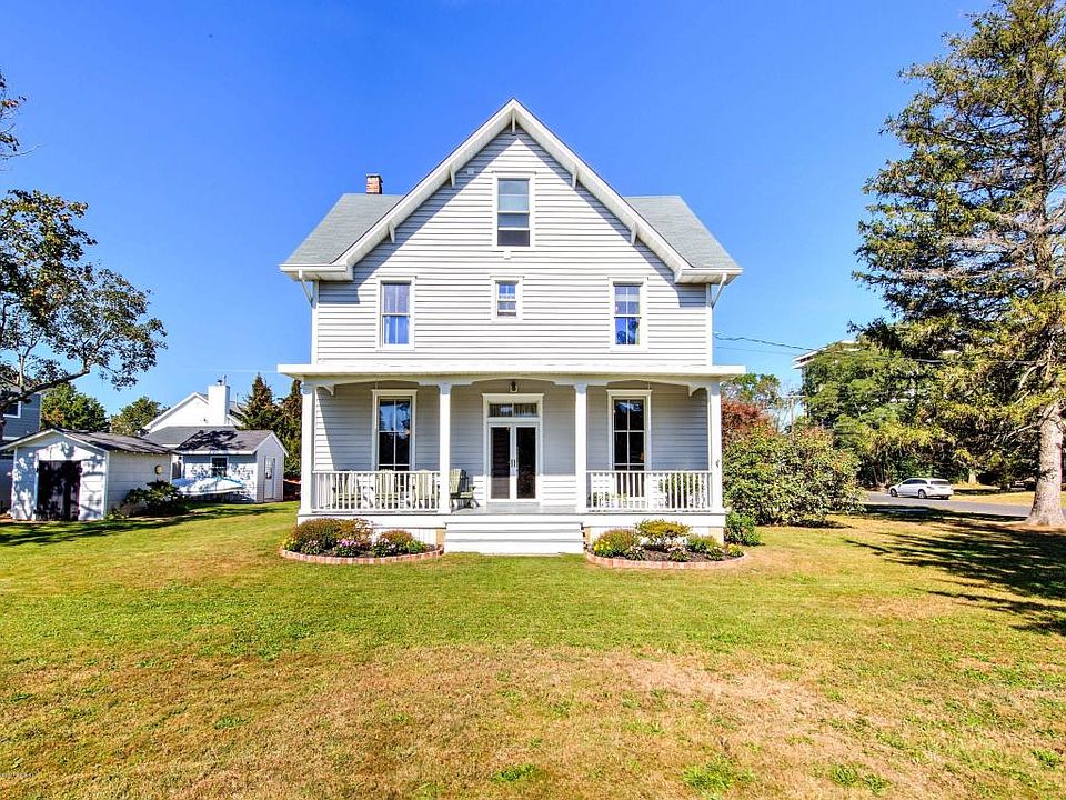 Charming Old World Colonial! Take a look at this one of a kind home. House was constructed to take in the best Southern and Northern Exposure nestled on an amazing 100 x 125 lot. Enjoy 4 Bedrooms, two spacious rocking chair porches, lovely landscaping and garden as well as over-sized windows throughout the house. Wide plank, rustic hardwood floors and 10 foot ceilings also add to the character of this amazing home. The walk-up full attic adds to the imagination of possibly expanding for more living space. Turn-key for year round living or even a summer retreat, make this home your own! High and Dry, Low Taxes, seconds to the heart of town. Close to all, Beaches, Marinas, Restaurants, mass transit by way of Train, Bus or Fast Ferry.A Must See!