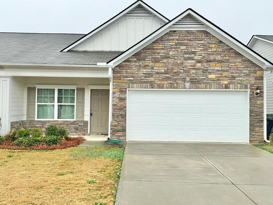 Modern Townhouse Delight: Welcome to this captivating townhouse, a mere 2 years young, boasting a sleek design and modern amenities perfectly suited for contemporary living. Abundant Space & Timeless Appeal: Step into this attached 3-bedroom, 2-bathroom residence offering timeless appeal and a functional layout that exudes comfort. Elegantly Designed Ranch Style: Introducing The Peachtree R, a charming one-story Ranch style dwelling catering to the demands of today's lifestyles. Inviting Living Spaces: As you enter through the covered front porch, discover an open layout featuring a versatile front flex room, suitable for a living room or study, perfectly complementing the centrally located kitchen. Gourmet Kitchen: The heart of the home, the kitchen, impresses with granite countertops, upgraded Aristokraft cabinets, a center island, and ambient flush mount LED lighting, presenting an ideal space for culinary creations and delightful gatherings. Seamless Indoor-Outdoor Living: Access the yard directly from the great room, creating a seamless transition between indoor and outdoor spaces, while the luxurious Owner's suite offers a tranquil view of the surrounding landscape. Comfort and Convenience: Secondary bedrooms boast deep walk-in closets, accompanied by a conveniently located hall bath and laundry rooms, ensuring ease and efficiency in daily routines. Luxurious Finishes: Revel in upgraded flooring throughout the main living areas, enhancing the ambiance and adding a touch of luxury to this exceptional abode. This townhouse is a testament to modern sophistication and promises an unparalleled lifestyle in a highly sought-after location.