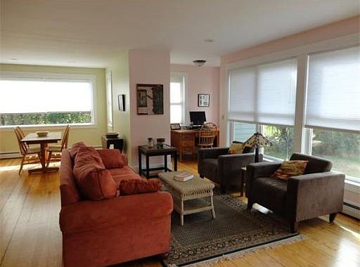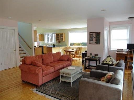 Beautiful open florr plan with lots of windows and sunshine! Warm yello pine floors throughout. Elegant wood burning fireplace and lovely mini-office space with stained glass window off the living room. First floor master suite. Open kitchen and dining room. Two bedrooms and a full bath upstairs surround a large landing with exterior covered balcony. Suite of two rooms in walkout has private entry and could be a home office, gym, game room or guest suite. (Additional space not included in t...