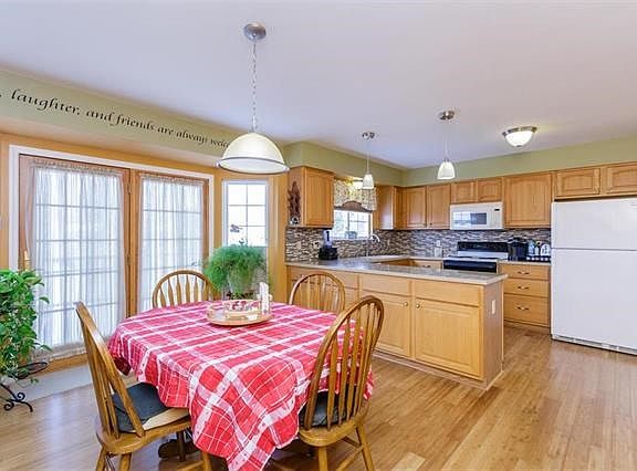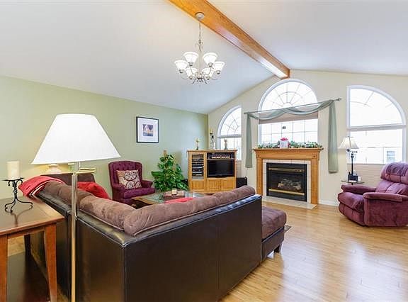 Quiet cul-de-sac lot in a 54 home development. One way in and one way out! Nice lot sizes and exceptional homes. This three bdrm. home with possible 4th bdrm. in lower walk-out basement has been well taken care of. Updated flooring thruout the main level, Corian countertop and sink, backsplash and faucet have been updated - all appliances stay as well as window treatments. Vaulted great room with wall of windows and gas fireplace. Master bedroom has soaking tub and double vanity with updated shower and doors and frosted privacy window. Nice size second and third bedrooms. Lower level finished with rec area and media room, full bath and bdrm.. Walk out basement with patio and Timber-tech deck with a retractable awning. Vinyl fenced yard.