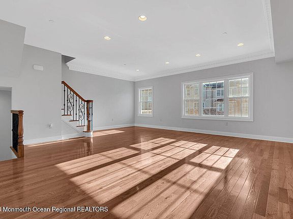 Welcome to The Villages At Aberdeen. This townhome features an astonishing 2371 sq. ft. of beautiful living space across three levels. The first level features a front foyer and a spacious den with a full bath. The den connects to a two car garage and has sliding glass doors that lead to a paver patio in the backyard. The second level opens up to a large living room with lots of natural light, crown moulding, staircase with wrought iron spindles, hardwood floors and a powder room. There is an inviting butler bar with cabinetry, wine refrigerator and granite countertop. The butler bar bridges into a gourmet kitchen with 42'' cabinets, granite countertops, upgraded backsplash, stainless steel appliances, pantry, large center island and sliding glass doors to a private deck. The third level includes a primary bedroom with a tray ceiling, en-suite and a custom walk-in closet. There are two additional bedrooms, full bathroom, laundry room and hardwood floors throughout. The home also includes 9 ft. ceilings, security system, recessed lighting and an epoxy garage floor. Ideal location for commuting. Close to train, bus, GSP, schools, shopping, restaurants, parks, and beaches