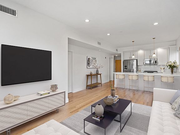 Welcome to your stunning new home in the heart of Porter Square perched on the second floor! This beautifully updated 2-bedroom, 2-bath condo combines modern style with unbeatable convenience. Enjoy new hardwood floors and freshly painted walls, creating an inviting ambiance. The open-concept layout seamlessly connects the living, dining, and kitchen areas, ideal for entertaining. The kitchen boasts quartz countertops, stainless steel appliances, and ample storage. Floor-to-ceiling windows flood the space with natural light, while central air ensures year-round comfort. The primary bedroom features a luxurious en-suite bath with double vanities and a tiled walk-in shower. Additional perks include an in-unit washer/dryer, one deeded parking spot, extra storage, and an elevator in a professionally managed building. With a strong rental history and prime location near Harvard, Porter Square, and public transit, this home is a must-see!