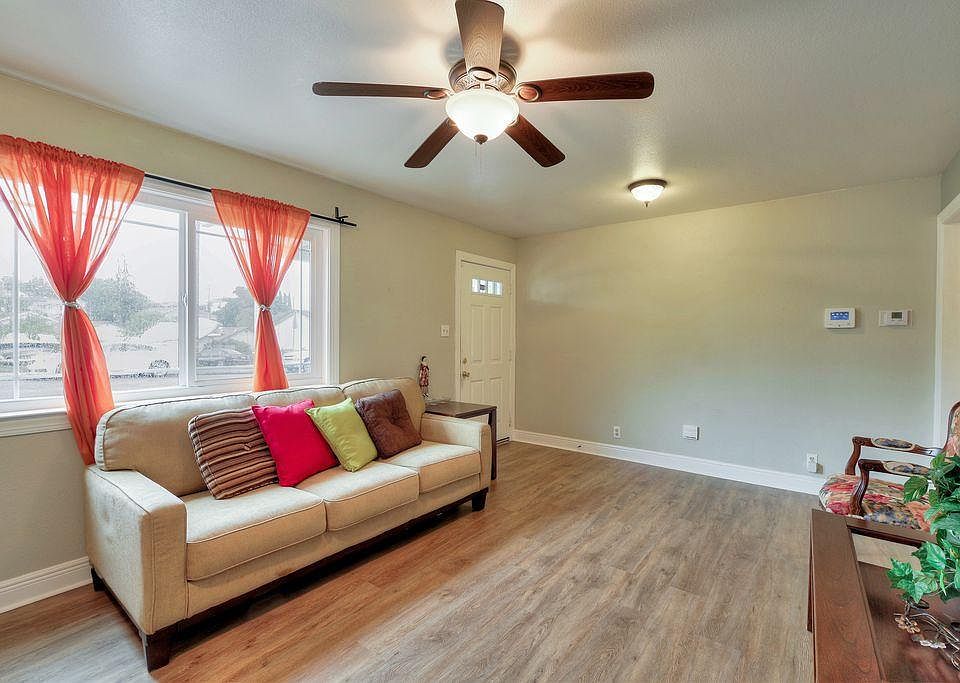 This beautiful house has ample interior and exterior space: Large living room, 2 dining rooms, garbage disposal, gas range, enclosed porch adjacent to the deck, new water heater, new fruit trees, back yard fully covered with natural tree mulch, extension of driveway with new cement on one side of the house. This house has been fully re- pipe with copper and hard plastic pipes. Bonus room for office, yoga or Art work.