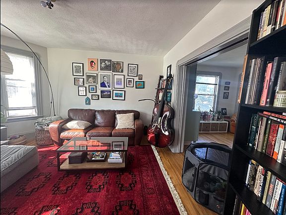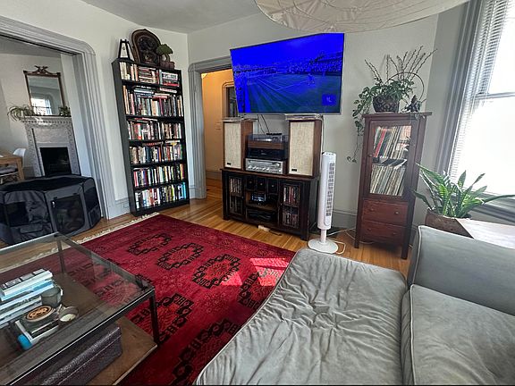 This stunning first floor unit boasts gorgeous hardwood floors, high ceilings, a spacious open living room with large bay window that allow in an abundance of natural light. The formal dining room is also generously sized and has a built in curio cabinet, decorative fireplace/mantle and another big bay window. The well appointed kitchen offers stainless steel appliances including a gas range and dishwasher and plenty of space as the sink, cabinets, and dishwasher are nicely tucked away in a "prep nook". Additionally there are two equal sized bedrooms located at opposite ends of the apartment. Both have big windows and closets and a good size full bath with ceramic tile and tub. Out back is an exclusive covered porch and small yard area. Lastly there is free dedicated laundry in the basement as well as space for extra storage Easy street parking Cats welcomed, dogs considered on a case by case basis Amazing location in Davis Sq!! Located just a 5 min walk to Davis Sq T stop and so close to many shops, markets, restaurants, parks and more! Available 9/1 No utilities Pets considered First, Security, Broker Fee
