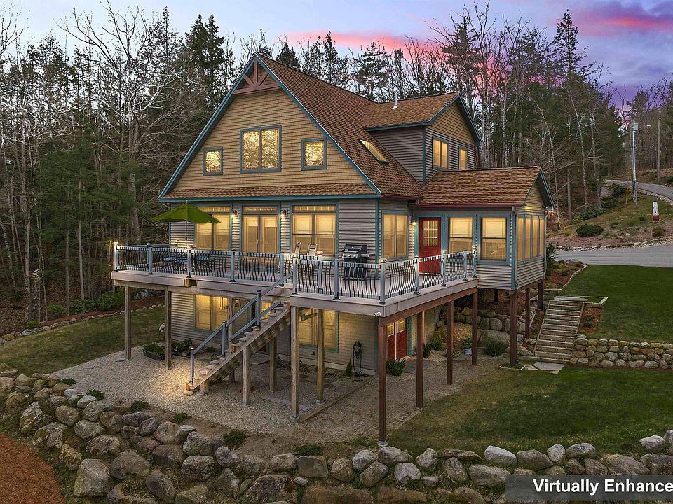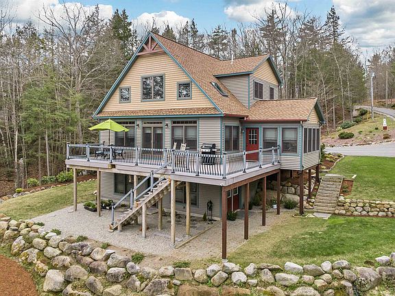 Experience the tranquil allure of Franklin Pierce Lake from the comfort of this captivating craftsman-style retreat. Situated on a 3.4-acre estate spanning two parcels, each has 1.7 acres with potential buildable house lot. 2-story 3-car garage with utilities, alongside an additional 2-bay garage. Recent exterior upgrades, such as a new roof, stairs to the water, dock, enhance the property's appeal. Step inside to discover a haven of elegance and comfort. The first floor welcomes you with 9-foot ceilings and a captivating two-story open-concept living space, full of natural light. A new high-end kitchen, granite countertops and GE Cafe appliances, anchors the home, while custom touches add whimsical charm. Relax in the cozy ambiance of the two-story great room, boasting post and beam architecture and a gas fireplace, with sweeping lake views from every angle. A sunroom offering picturesque vistas in all seasons. This energy-certified home boasts a geothermal heating/cooling system, ensuring low energy costs! Outside, meticulously manicured grounds showcase professional landscaping, reflecting pride of ownership and attention to detail. Embrace a lifestyle of leisure and adventure with year-round recreational opportunities nearby, including skiing, hiking, snowmobiling/ATV riding. Conveniently located close to Keene/Concord, this lakefront paradise offers the perfect blend of convenience and tranquility. Schedule a showing today and immerse yourself in lakeside living!