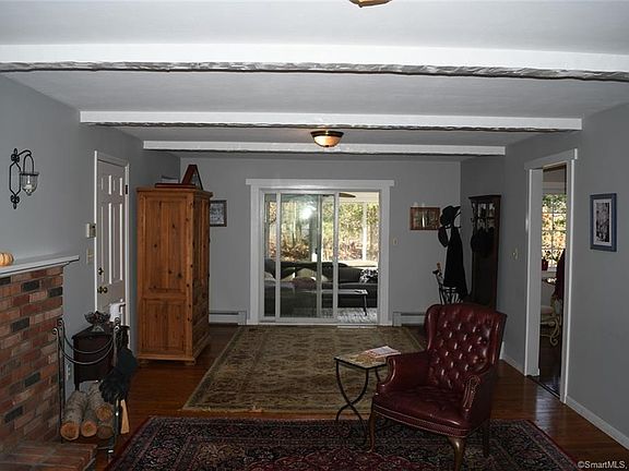 Share those special memories in this gracious center hall colonial. The spacious, sun-filled rooms are the perfect setting for everything from intimate family gatherings to those cherished, memorable celebrations. Sun streams into the eat-in-kitchen which has been renovated with natural Birch cabinets, granite counters, subway tile back splash, stainless steel appliances and Brazilian Tiger wood floors. Relax by the fireplace in the family room on cool winter nights or enjoy the summer breezes on the three-season porch which overlooks more than an acre of natural tranquility. The formal living and dining rooms complete the main floor. Four generous sized bedrooms are all located on the second floor. Master bedroom has a private bathroom with shower stall. There is also a full hall bath with tub on the second floor. The lower level boasts a finished recreational area perfect for use as a playroom, exercise area, home office or man cave. There's still room on the lower level for a wine cellar or work shop. Updates include thermal windows, central air conditioning, heating system and interior and exterior painting. This home is located on a quiet road and enjoys all the bucolic beauty and award winning schools Easton as to offer, yet is only a mile from the Merritt Parkway.