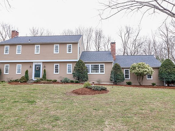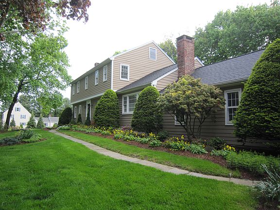 Quintessential New England Colonial set on a corner in an established, quiet neighborhood. Meticulously maintained & updated, this beautiful home is ready for you to move in & make it your own. Hardwd flrs throughout except classic slate foyer & tiled sunroom. Custom mouldings & millwork, recessed lights (LED bulbs) & ceiling fans are among the impressive finishing touches. Spacious, light filled LV features a gas fireplace w/attractive brick front & a striking wood mantel. DR w/louvered doors is ideal for formal, intimate gatherings. Remodeled in 2007, the well designed KT is just lovely. It features rich cabinetry, granite counters, gas cooktop, double wall ovens, pendant lights & under-counter lighting, an island w/extended breakfast bar, & bay wndw. What a treat to bask in the natural light of the delightful sunroom! French door/sliders open to deck & yd. Just off the sunroom is a comfortable FR perfectly accented w/one brick wall & gas fireplace. A powder & laundry room complete the 1st flr. 3 of 4 BR upstairs have ceiling fans. The MB has double closets & a full BA. Hallway full BA features beautiful tilework. Large closets & attic provide ample storage. Beautiful landscaping w/mature plantings. Updates too numerous to list! Notable improvements incl: 2018 MB BA, 2015 25yr roof, 2012 generator, 2011 Hall BA, 2010 wndws, 2009 furnace & hot H2O tank, 2006 a/c (2 zones) & electric, 2004 3rd heating zone, 2001 well pump.