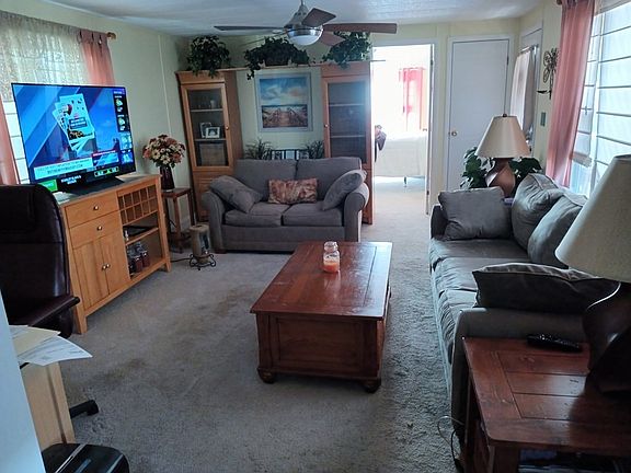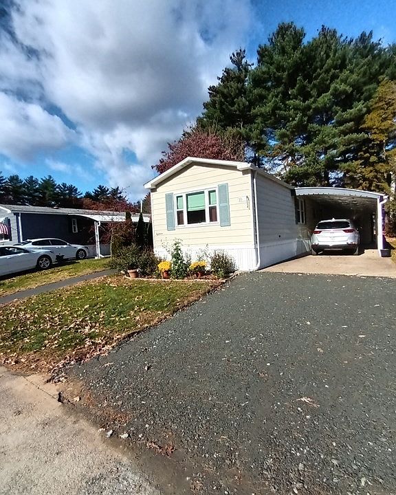 Rustic Pines is a beautiful 55+ Resident Owned North Attleboro community neighborhood w/ 40 sites. This Bright & Sunny home sits on a wooded lot with beautiful arborvitae trees planted along the parameter. This 2-bedroom home offers great closet space and an updated full bath, complete with linen closet. Enjoy the spacious updated kitchen with newer appliances, a built -in hutch, with expansive cabinetry for plenty storage. The large living room is bright and cheerful and has access to the outside. w/ great outdoor deck that is covered to protect from sun and rain. Beautiful perennials through the landscape on this well-manicured property. Plenty of off-street parking complete with a carport to protect from the elements. All appliances are included, stove, dishwasher, microwave, refrigerator, washer, dryer. Application must be submitted to the Board for acceptance after offer has been accepted. Monthly Park fee is $400. Near all amenities.