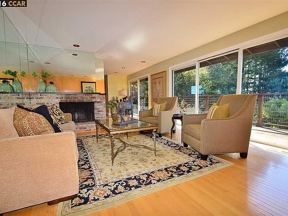 Private light filled Glorietta retreat yet minutes to BART & Town!Views from every room.Spacious living room has brick fireplace. Beautifully remodeled kitchen with Viking appliances & breakfast nook. Updated baths. Private Master.Spa area: a potential flat yard.Huge unfinished room.Open Sat/Sun 1-4