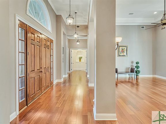 Gorgeous custom-built home in Southbridge. Entering the home you are met w/vaulted ceilings & lg LR/DR combo & engineered wood flrs throughout most of the home. Gourmet kitchen w/granite & stainless, walk-in pantry & island area-perfect for entertaining. Den area off the kitchen w/built-ins & a gas fireplace that leads out to a huge screened in porch & outdoor stone patio w/a very private wooded backyard. Right side of the house offers a lg rm-could be 4th BR/Media Rm w/private bath, wet bar & wine fridge. Two more BR on the right side of the house; one has access to the screened in porch area. Left side of the house offers two private offices/study, one w/built-in bookcases. Oversized Owner's suite, BR & BA w/stone shower, oversized soaking tub, granite vanities w/two sinks & access to the backyard. 3-car garage and a beautiful paver driveway!