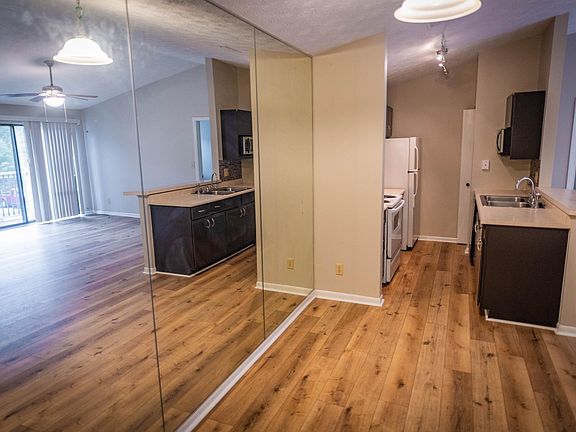 Welcome home! This light and bright 2 bedroom, 2 bathroom condo is open, inviting and cozy. Step through the front door and be wowed by the new, seamless, light-tone wood flooring that flows throughout the home. An abundance of natural light pours in off your private balcony through your sliding glass doors, bouncing off the freshly painted walls and into your main entertainment spaces. Curl up next to the fireplace or grab a seat at your kitchen bar. With both bedrooms being large in space and boasting walk-in closets you'll have everything you need to feel right at home. Each bathroom is also equipped with a bathtub and a shower. The complex is home to a large pool, fitness center and serene seclusion for the residents to enjoy. Centrally located to major highways, shops, restaurants and more!