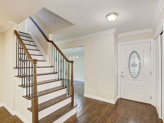 WOW RENOVATED!! Complete Renovation, Brand new Roof, New Siding, New Stone, New Driveway, New Walkway, Gleeming Hardwood floors through out, Large size rooms, with Crown Moldings, Roman Doors, Modern hardware, Kitchen with custom Cream (white) cabinets and eating area, granite tops, tile backsplash, stainless steel appliances, Oversize Great Room addition leading to backyard patio, Sunken Dining Room, Brick fireplace in formal living room. New roof and siding. Great for large family! Master bedroom on 1st floor with full bathroom, 2 additional bedrooms on first floor and 2 large bedrooms and full bath on second floor, Finished basement with tile floor, extra room for storage, new entry door, new garage doors, 2 car garage, finished garage with epoxy coating on floor, fenced in large yard, inground heated pool and patio area, full house generator, sump pump battery back up. Extra finished room over the garage with closet and it’s own staircase, Solar panels, laundry room on first floor, sprinklers system