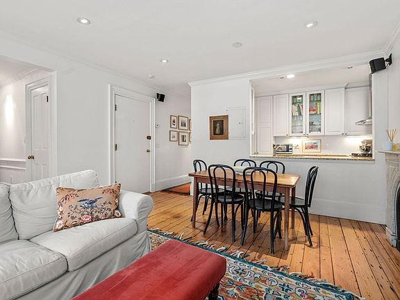 Welcome to 18 Worcester Sq, Unit 2—a refined retreat in the heart of Boston, overlooking the picturesque Worcester Square fountain. This 2-bed, 1-bath residence spans 887 SF, blending contemporary elegance with timeless charm. A private entrance leads to an inviting space featuring wide-plank hardwood floors, decorative fireplace w/marble mantel, and exposed brick accents. The well-appointed kitchen with a pass-through breakfast bar opens to a sunlit living/dining area framed by beautiful bow windows. A formal foyer, ample closets, and an extra storage space provide exceptional functionality. The primary bedroom features French doors leading to a bathroom with a vanity and tiled shower, plus a separate wash closet. Enjoy the convenience of in-unit laundry and direct off-street parking. A rare blend of sophistication and practicality, this home offers tranquility and city vibrancy in one of Boston’s most coveted locations.