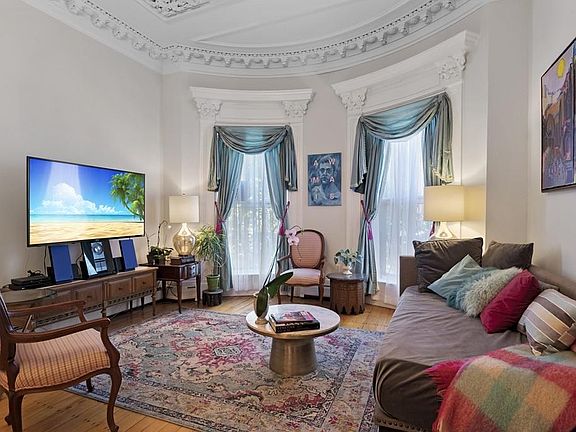 Embrace the city lifestyle while living in grandeur! Breathtaking crown molding and soaring ceilings along with original pine floors feel like you have stepped back in time, while the incredibly large living space is a breath of fresh air not often found in a one bedroom. This loft like space allows for a flexible and versatile layout. Nestled on a historic square with a fountain, in the bustling and vibrant South End, this home will not disappoint. Tall windows add flair and allow in the light. The kitchen boasts stainless steel appliances, granite counters and wood cabinets.Majestic sliding doors lead to the over sized bedroom, with 2 closets.The bathroom holds a mosaic tiled floor and tiled shower surround. A large outdoor deck is ideal for lazy summer days. There is free common laundry in this self managed, pet friendly association. Stroll over to Toro or Flour Bakery, walk through Blackstone Park or head to BMC, the Prudential or Copley Place from this conveniently located home!