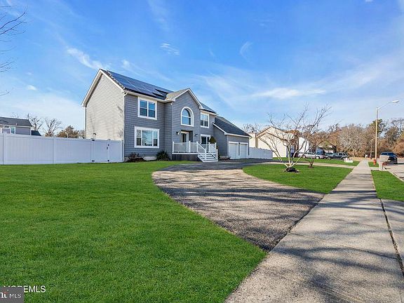 Nestled in a desirable neighborhood with larger lots, curbs, and sidewalks, this beautifully maintained 5-bedroom, 3-bathroom home offers space, style, and functionality. A first-floor bedroom and full bath provide flexibility for guests or multi-generational living. The home boasts a circular driveway and impressive curb appeal with newer (2022) cedar impression siding, gutters, downspouts, trim, sliding door, and front door, along with newer double-hung windows (2022) and a Timberline roof (2022). Inside, the first floor features newer luxury vinyl plank flooring, a woodburning fireplace, and a welcoming two-story foyer. The remodeled kitchen (2019) includes stone countertops, soft-close cabinetry, a pantry, and a full appliance package. Recently renovated bathrooms (2023) add modern style,while a newer central air condenser (2022), furnace (2014), and water heater (2019) provide peace of mind. The large primary suite includes two spacious closets. The huge yard is an outdoor oasis with a composite deck (2020) and an inground pool with a newer liner and cover (2019). A full basement offers additional storage or finishing potential. The home is equipped with solar panels, keeping the electric bill at just $192 per month, with only a few years left on the lease. Newer fencing (2020) adds privacy, making this home truly move-in ready. Schedule your showing today.