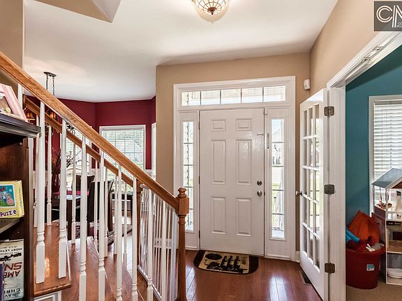 Great 4 or 5 bedroom home on quiet cul-de-sac in Hunters Crossing subdivision. Formal dining room with bay window and hardwood floors, office/den off foyer, spacious family room leads out to deck, large eat in kitchen with hardwood floors has stainless steel appliances, island & pantry. Master has a private bath with walk in closet, finished bonus room with 2 closets could be media/playroom or 5th bedroom. Deck overlooks oversized backyard which is completely fenced in. Don't miss this one!