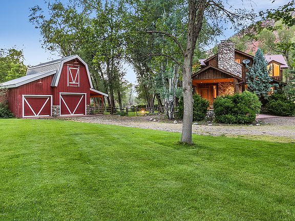 A Roaring Fork River Frontage listing consists of a 2.34 acre lot. In a park like setting that is nestled among a forest of trees and lush lawns. The home is in a special class of its own with doors and windows opening to the spectacular river views. Barn/garage with a loft is ideal for a corporate office or bunk house. Bring all your furry companions and enjoy the sanctuary.