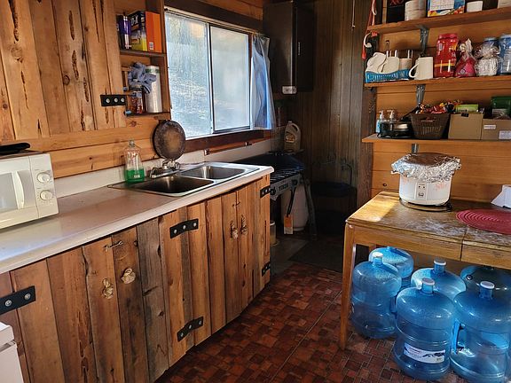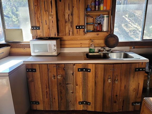 This charming approx 500 sq ft cabin sits on 2.17 acres of pristine land in the beautiful Trinity Pines area with brilliant views of sunsets and rises. 2 parcels sold together (second parcel is 2.59 acres). 2 working wells, one on each lot (good producers per seller). Eco-Worthy 400-Watt 24-volt solar panel for power (per seller). Borders BLM on one side, for added privacy. Garden area on top of hill has been established. The natural wood and craftsmanship in this cabin are gorgeous. Functional and convenient RV included in sale. Seller has no knowledge of the cabin- buyer to perform any and all inspections deemed necessary. Must call for an appointment. Occupants DO NOT want to be disturbed, must give 24 hr notice to show!