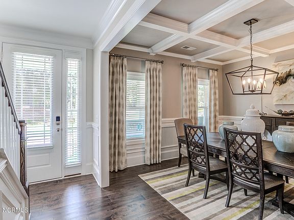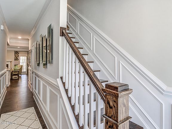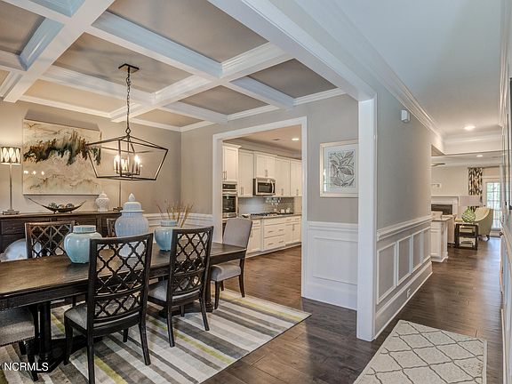 Welcome home to The Benton, built by Caviness & Cates in The Sanctuary at Forest Sound. This 3-story home includes 5 bedrooms, 4.5 baths and plenty of extra space throughout. Walk inside and you will notice the elegant dining room with coffered ceilings and picture frame wainscoting. The kitchen with large peninsula island, will feature ''Frost White'' quartz countertops, natural stone mosaic backsplash, white cabinets, pantry with wood shelving, and stainless-steel appliances, including a natural gas range. Flowing seamlessly from the kitchen, is the great room with natural gas fireplace and covered porch with grill patio overlooking the backyard. The first-floor guest suite includes a walk-in closet, tray ceiling with crown molding, dual sink vanity, shower with tile surround, linen closet and private water closet. Completing the first floor is a half bath and mud room off of the garage entry with built-in coat station. The second floor features the primary suite with tray ceiling and crown molding, along with a spacious walk-in closet with wood shelving. The primary bathroom includes a tile shower with bench, linen closet and private water closet. You will find 2 additional spacious bedrooms with walk-in closets, the laundry room and a full bath on the second floor. Be sure not to miss the 3rd floor! The 4th bedroom, along with a full bath and bonus room can be found here, making it the perfect retreat! Additional features in this home include LVP flooring and crown molding throughout the first floor living areas, oak tread stairs, epoxy garage floor, tankless natural gas hot water heater and gas HVAC. The Sanctuary at Forest Sound is centrally located in the heart of Hampstead. 15 minutes to Wilmington or Surf City/Topsail and just 1 mile off the Intracoastal Waterway. Future proposed amenity includes a boat storage area. Home is under construction. Completed pictures are of a similar home. Please contact the community agent for details on selected finishes.
