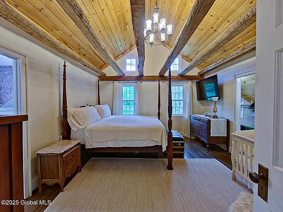 Within 40 mins of Saratoga Springs, the Historic Racetrack, Albany's Capital Region & Bennington, Vermont. Fully renovated 1828 triple brick timber-built farmhouse on 19.3 acres is ideal for horse boarding, Airbnb, wedding venues, or hobby farm. Renovations include but not limited to modern kitchen with induction cooktop, primary suite, en-suite, new windows, 2 new heating systems, roof replacements house and garage, electrical updates and brand-new seller-owned solar system, the list goes on. 2014-built 3 stall horse barn includes oversized equipment storage area, heated tack room, wash stall, hay loft, and a dedicated well. Multiple riding arenas, 20x40 workshop/storage bldg, fruit trees, and a fishing/kayaking pond add to the property's incredible value. A Must see to appreciate.