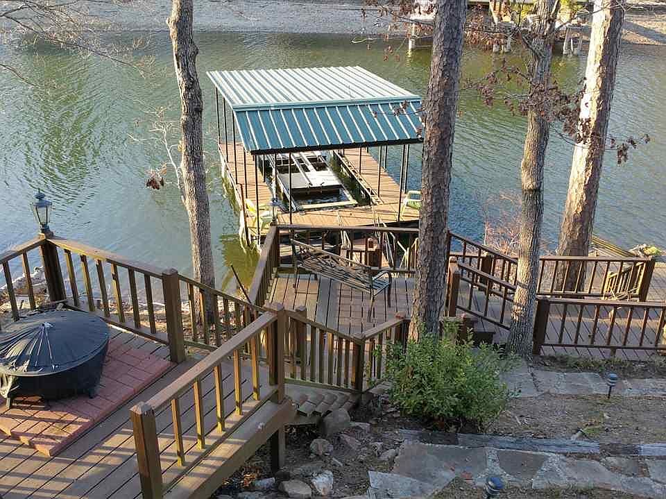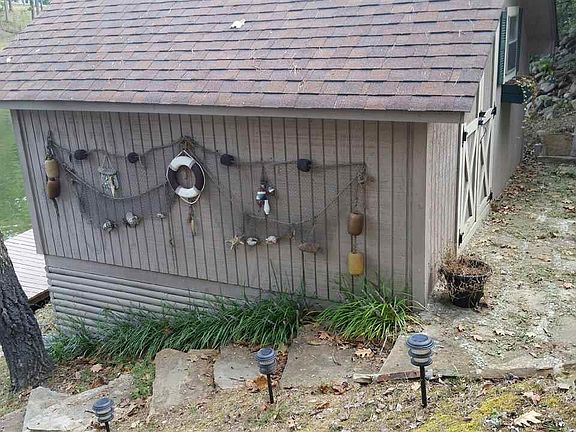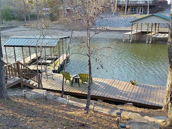 Extremely well kept & skillfully renovated Lake Home. Would make ideal year round living weekender,or vacation rental. Deep year round water with 100 lakefront. Boat dock w/lift & swim dock. 700 SF of decks and porches. Attractive site built storage building, 200 AMP workshop W/AC. sunroom, beautiful illuminated granite countetops in kitchen,updated cabinets. Open floor plan with vaulted ceiling in L.R/Kitchen. Jetted tub, granite in bath, WIC, high end fixtures, All kitchen appliances stay.See remarks.