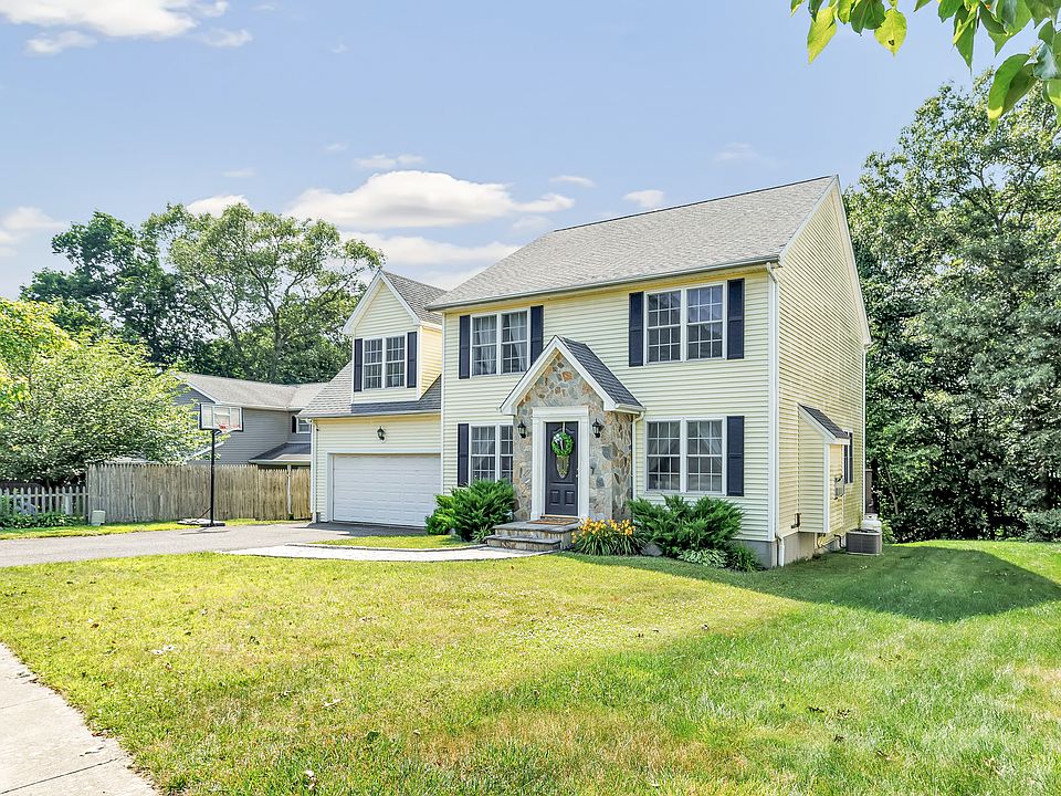 This inviting Colonial home built in 2006, is nestled on a cul de sac in Naugatuck, CT. This beautiful home features 3 bedrooms and 2.5 bathrooms. The primary bathroom offers a walk-in closet and jacuzzi tub. The upper level also highlights a large bonus room perfect for family gatherings and entertaining. On the main level, you will find the kitchen, equipped with stainless steel appliances and new scratch resistant flooring that flows seamlessly into a spacious and open dining room and living room. The open layout boasts hardwood floors, gas fireplace and large windows creating a bright and welcoming atmosphere throughout. In addition, the 2 car oversized garage is complete with wall shelves and a home fitness area. Step outside through the sliding glass door onto a 2 tiered wood deck, leading to a beautifully landscaped yard and stone patio complete with patio string lights. Take some time to relax in the pool or lounge on the pool deck. House also comes equipped with Google cameras, doorbell and ADT security system. Located in a friendly neighborhood near amenities and highways, this Naugatuck Colonial offers a delightful mix of comfort and convenience for modern living and is perfect for making lasting memories with loved ones.