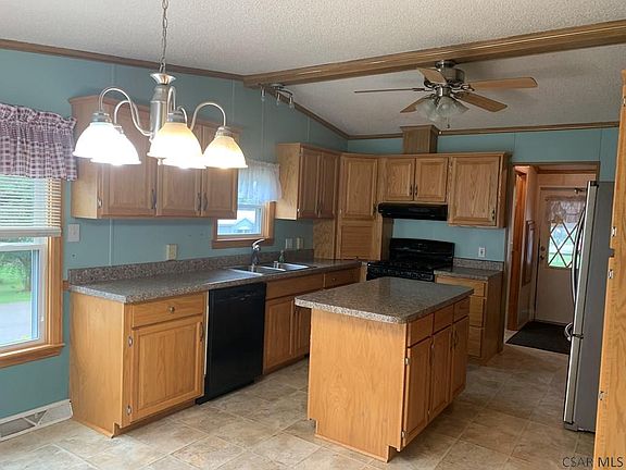Nice well maintained double wide located in Sunny Acres MH Park. Nice newly remodeled kitchen with oak cabinetry, vinyl floor, built in sun porch, first floor laundry, Large Living room with gas fireplace, separate family room or dining room, 3 bedrooms with large closets, Master bath has newer large size shower. Nice trek deck for enjoying sunny days, garage 2.5 car with lots of room for storage. Apple trees, and separate shed. Home has most newer window world windows and sliding glass door. New metal roof. Lots of upgrades makes this home a must see. Lot rent is $440. per month. includes sewage and Trash. Water is $11.16 for 0 - 1500 gal.