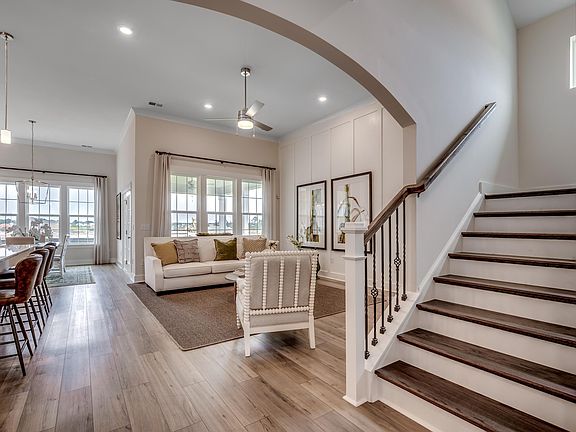 Fall in love with the Fullerton, as you walk in to this contemporary 2-story layout with 12-foot ceilings throughout the great room, kitchen, and eat-in dining! The primary bedroom with boxed tray ceiling is on the main level, along with an extra-large laundry room with a sink, plenty of cabinets and quartz tops. Another bedroom and bath are found on the main level, with a 3rd bedroom and bath located upstairs. You’ll find the large walk-in attic storage very handy for storage! A gourmet kitchen with a gas cooktop, wall oven, beautiful soft close admiral cabinetry, farmhouse sink, tiled backsplash, and a large one-level island. In the great room you can enjoy fireplace & walk out to your covered patio and outdoor fireplace! The primary bath features a huge, tiled shower with glass enclosure, dual shower heads, extra-large double bowl vanity, and a spacious walk-in closet. The stairs will have wood treads, baths will have ceramic tile flooring, and luxury vinyl plank will be throughout the remaining main level living areas. Plush carpet will be featured in all bedrooms. Smart Home Automation is included. We offer to-be-built opportunities. Ask about our current incentives too! Our 1-2-10 year warranty will give you peace of mind. Superior energy efficient construction includes 15 SEER HVAC and R-38 ceiling insulation. Photos shown are of our furnished Fullerton model, some selections vary.