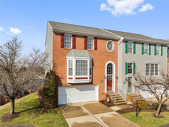 Welcome to maintenance free living! 180 Berry Field Court is a 3 bedroom, 2 full/2 half bath home offering a spacious main level with hardwood floors, built-in bookcases, a gas fireplace, eat-in-kitchen with stainless appliances and large pantry. The living and dining areas are embellished with beautiful crown and trim molding. Natural light warms and fills the space through a large bay window and sliding glass door. A balcony off the dining room offers some of the best views in the Forest Oaks Community. The upper level offers 3 bedrooms, 2 full baths and a laundry closet. The primary bedroom is ensuite with a walk-in closet, double bowl vanity, jetted tub and shower. The lower/street level offers additional 20x10 living space, a half bath, access to the 2-car garage and a shady patio. Newer mechanicals. The HOA covers all exterior maintenance, landscaping and access to the community pool. North Allegheny Schools and close to shopping, dining, entertaining, and main highways.