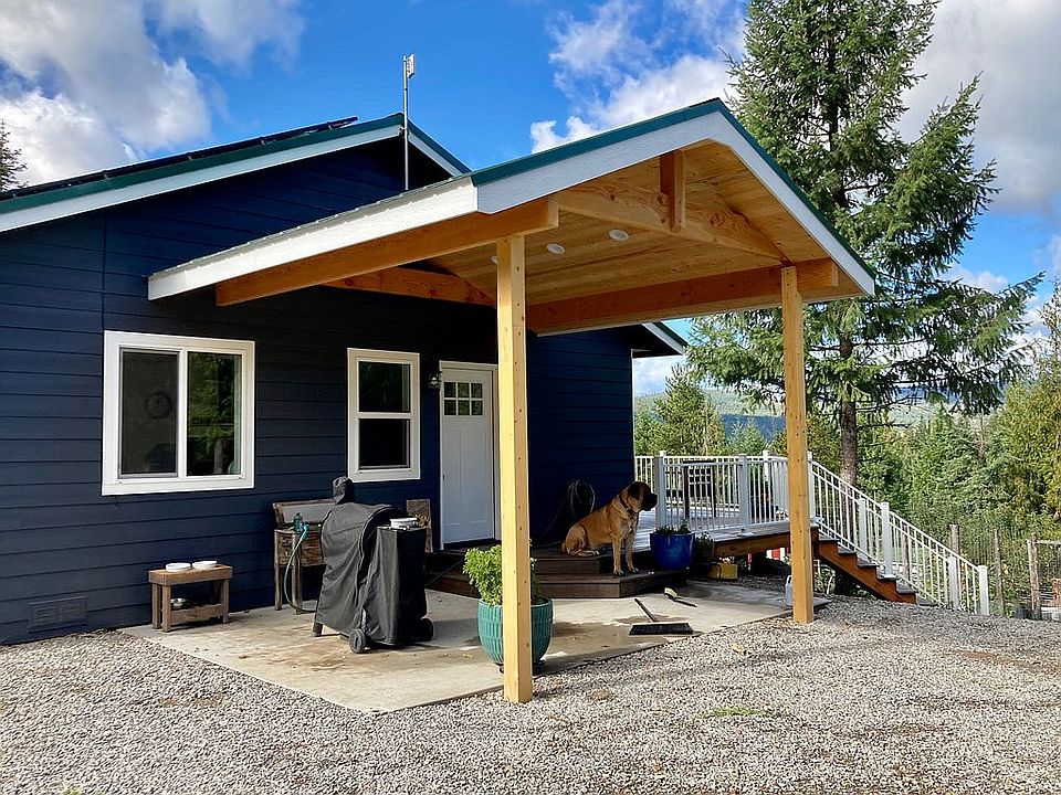 Off grid living! All conveniences with laundry hookups, dishwasher, range, water heater, wood cook stove, drilled well and septic system. Grid power is available. Home is nicely finished and one level. Deer fenced raised bed garden, large pasture area, small finished studio. Good access a short distance to county maintained road.