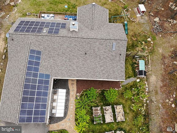 Mountain retreat with amazing views located in a gated community on 20 private acres bordering Cacapon State Park. Approximately $150,000 in new improvements since last purchase in 2020: 16 kW solar power system that produces about $2,400/year in free electricity with two whole-house Tesla 2.0 Powerwall battery back-ups; new 5T Bryant electric heat pump; new 50-year architectural roof, skylights, gutters with leaf guards, and 6” downspouts; all new kitchen appliances (dishwasher, refrigerator, microwave, and gas range); garden/orchard (fence, raised garden beds, greenhouse, and 30+ fruit trees that produce fruit June through October including cherries, apricots, pears, plums, peaches, nectarines, and apples); back-up well hand pump; 2 chicken coops; swing set; and Starlink. House has 3-bedrooms, 2.5 bathrooms. This home has a bright open-concept great-room perfect for entertaining featuring tongue-and-groove, stained pine cathedral ceilings and a wood-burning fireplace with a rustic stone hearth. The Primary suite is large with a spacious bathroom offering dual vanities, shower, and Jacuzzi tub. The primary suite has an adjoining private office for remote work and a separate laundry room. The screened-in porch and large deck on the rear of the house overlook Sleepy Creek Mountains and affords beautiful sunrises and relaxing evenings. Enjoy plenty of hiking opportunities on the property or adjoining State Park land. Lots of wildlife. The property is home to wild blueberries and huckleberries to pick in summer. All furniture is negotiable