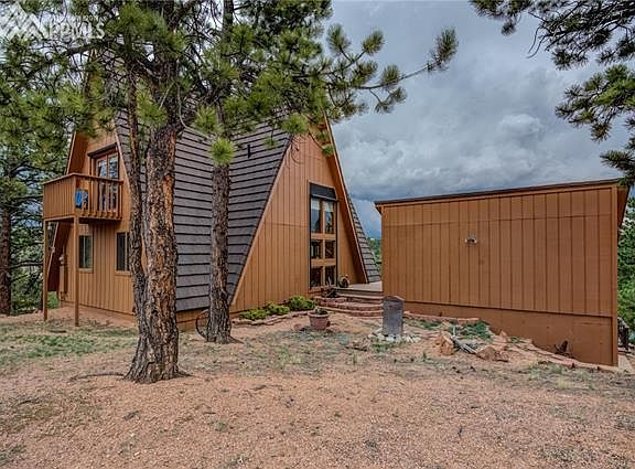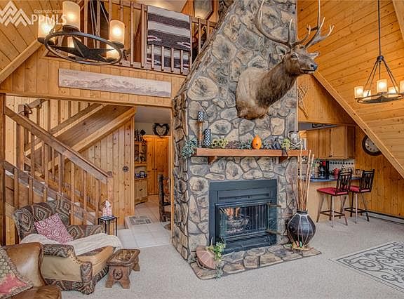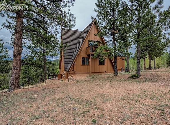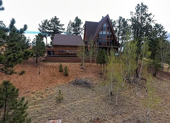 Beautifully designed double A-Frame styled home located on a picturesque 2.83-acre lot with one of the best views of Pikes Peak to be found in the area. This home has been updated with many sought after amenities that will please you. Perfect for full time living or as a vacation home this property embraces the Colorado mountain lifestyle. Come relax in the Living Room featuring a renovated tongue and groove ceiling and gas log fireplace while gazing out the two story windows towards Pikes Peak. Two durable composite decks that walk out from the living and family rooms are the perfect compliment to the home. Expansive enough for entertaining large parties they feature fabulous mountain views surrounded by the attractively treed setting. The current owner is using the lower level family room as a master bedroom and the storage room as an enormous closet. All the shelving in the storage room will remain with the Property.The Decra roof is both beautiful and long lasting. Two, very efficient, Rinnai direct vent wall furnaces have been added to the main and lower levels providing additional warmth to the home. The bathrooms have been updated. The lower level family room is a comfortable place to kick back and watch a movie, a wet bar is included. The adjacent 2.83 vacant lot is also available. Located near the Highway 24 corridor the Breckenridge Ski Resort is 75 miles to the northwest along with the multitude of recreational opportunities that Colorado has to offer. Plan now to come visit this wonderful mountain property.