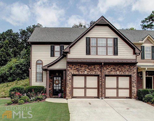 Lovely end unit-inside and out. Quiet gated community in easy-to-get-to West Marietta. Beautiful landscaping front and back. Fireside great room with high ceilings and French doors to cozy private patio. Kitchen with lots of storage open to dining area. Huge master with walk-in closet, sitting area and large master bath. 2 additional bedrooms and bath up. Laundry room up. Swim community and guest parking lots.